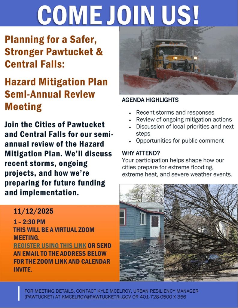 Come join the cities of Pawtucket and Central Falls for our semi-annual review of the Hazard Mitigation Plan.