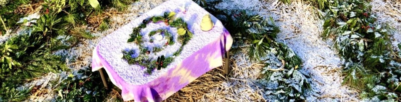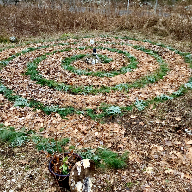 The Solstice Spiral Walk is a tradition that honors the seasonal cycle of light and dark by arranging a simple spiral labyrinth upon Mother Earth adorned with Evergreen Boughs & Treasures.