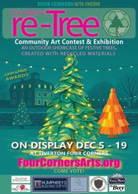 The Four Corners Arts Center is pleased to be hosting their annual “re Tree” – A Showcase of Trees Created with Recycled or Repurposed Materials. Opening nightto be held on December 5th 2025 in collaboration with Tiverton Four Corners Bright Night. Re-Trees will be on display December 5th – December 19th