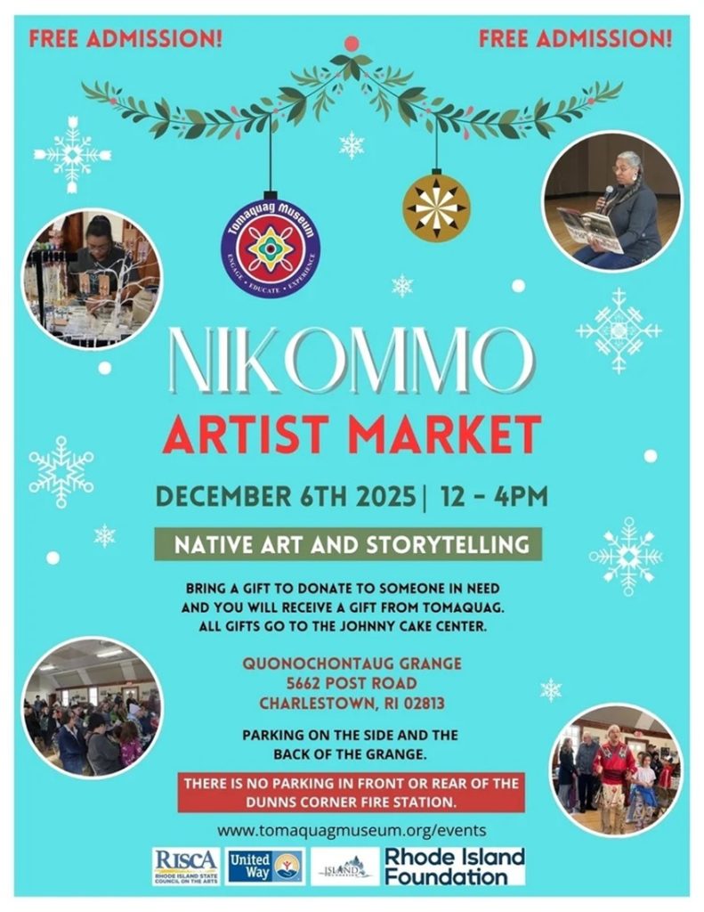 Celebrate Nikommo with the Tomaquag Team! Join us for your holiday shopping and support Indigenous artists.  Stop by anytime between 12:00 PM and 4:00 PM at the Quonochontaug Grange.