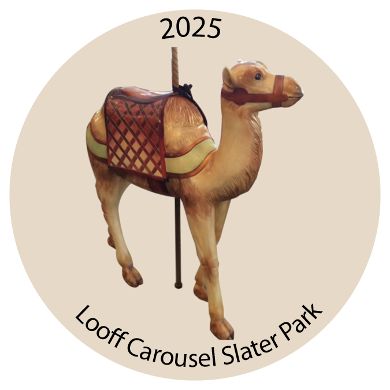 The Friends of the Looff Carousel at Slater Park is unveiling its new holiday ornament for 2025! This Barlow designed, porcelain ornament features the camel, one of the hand carved animal figures that comprise the historic Looff Carousel.