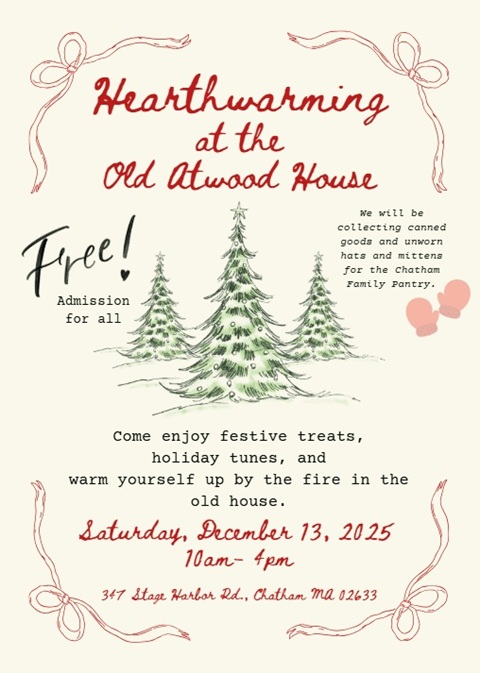 Our unique Chatham books and curiosities make special holiday gifts. We will be collecting new hats, gloves, mittens, and scarves for children in need, and non-perishables and canned goods will be collected for Cape Cod Family Pantry.