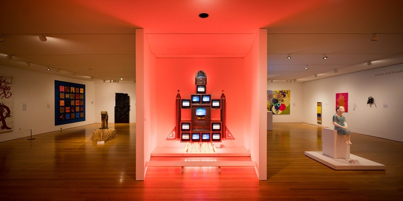 Examples from mid-century through the 1970s, including iconic works by Grace Hartigan, Alex Katz, Louise Nevelson, and Andy Warhol provide visitors with landmarks from which to explore more recent contributions by artists including Tony Feher, Jeffrey Gibson, Beatriz Milhazes, Nam June Paik, Doris Salcedo, Yinka Shonibare, and Kiki Smith.